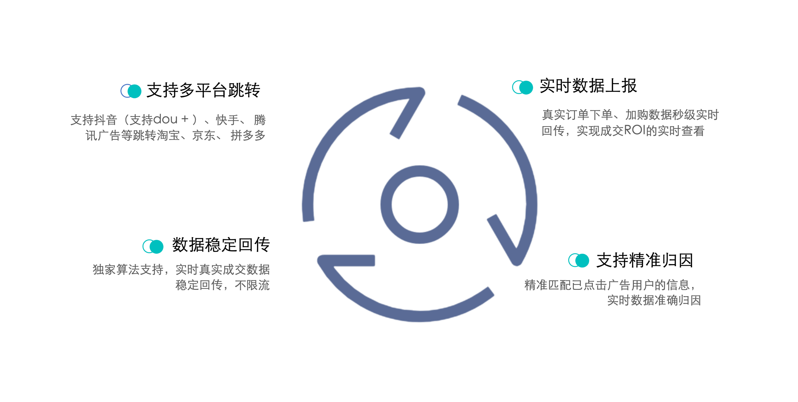 金数据智能CID解决方案支持定制OCPX下发策略,校准媒体模型训练算法。同时也支持多平台跳转、实时数据上报、数据稳定回传、支持精准归因。