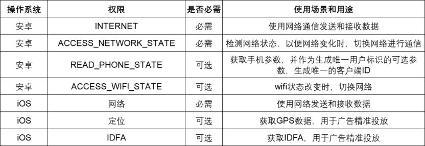 金数据|品友SDK调用的权限和使用场景、用途说明如下: