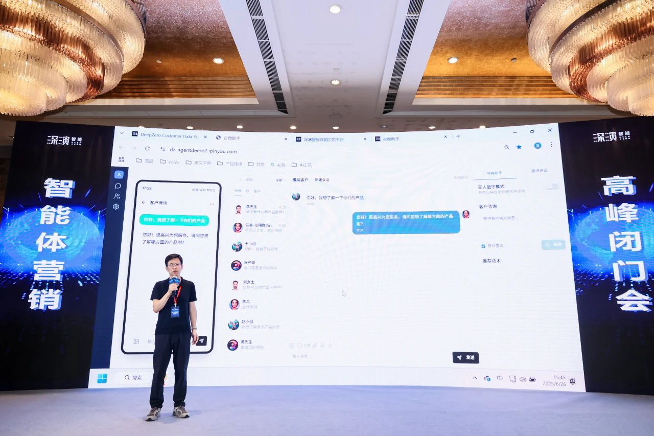作为已经成功帮助几十家大型企业 AI Agent落地的行业领导者,金数据智能DeepAgent Neo全面赋能营销域和销售域。 黄晓南和金数据智能CTO欧阳辰与金数据智能副总裁曹玉骥一起,为嘉宾现场演示了CRM、Social、销售、客服等场景的全面智能体,情景展现了DeepAgent Neo如何全面赋能企业各个环节。